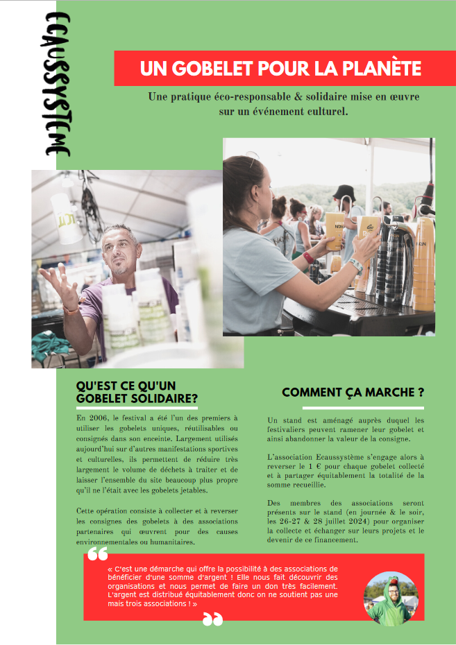 L'initiative "Un gobelet pour la planète" par le festival Ecaussystème